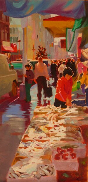 |   | "Fish Market Revisited" Oil              20" X 10"